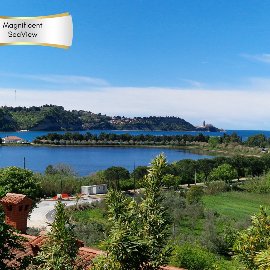 Pred apartmajem se nahaja terasa obdana z zelenjem, kjer se lahko sončite na udobnih ležalnikih, pripravljate svoje najljubše jedi na žaru in občudujete čudovit razgled na Strunjanski zaliv s Piranom v ozadju.