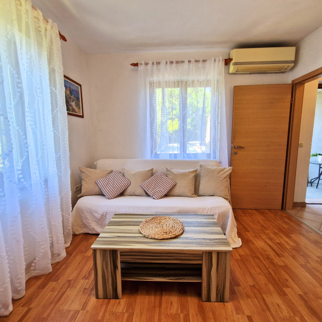 Apartma SARIA v Strunjanu je idealna izbira za vaše družinske počitnice. Nahaja se v pritličju družinske hiše in jo gosti prijazna družina, ki svojim gostom ponuja 2 spalnici z zakonskima posteljama in raztegljiv kavč v dnevni sobi za dodatno osebo. Apartma ima prostorno kuhinjo z vso opremo (štedilnik, pečica, velik hladilnik, pomivalni stroj in vsa posoda). Kopalnica je prostorna in opremljena tako s kadjo kot tudi s prho. Na voljo sta tudi pralni stroj, sušilnik in osnovni pripomočki za higieno. Stanovanje je klimatizirano, nudi brezžično internetno povezavo in velik televizor v dnevni sobi.