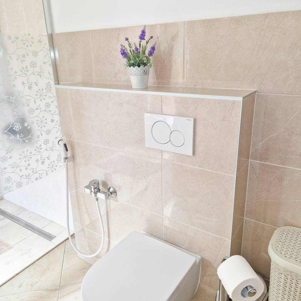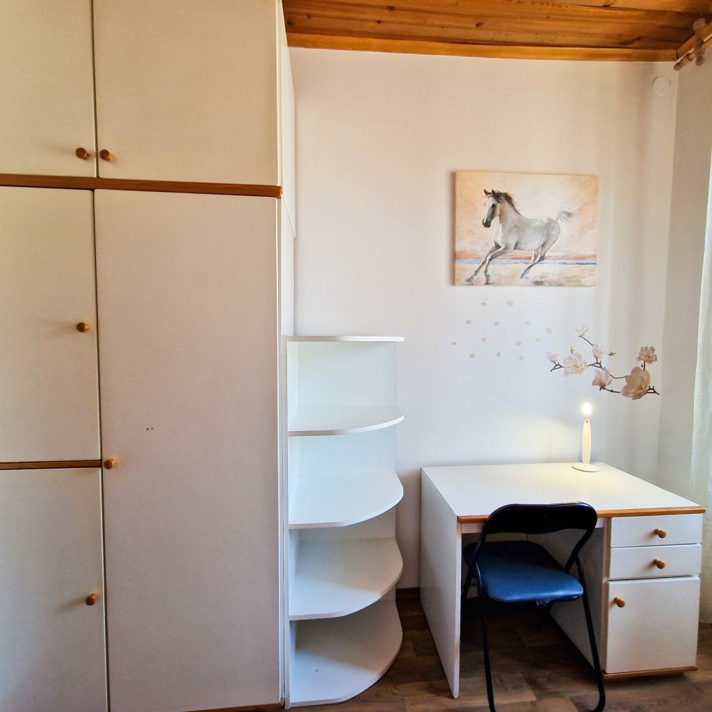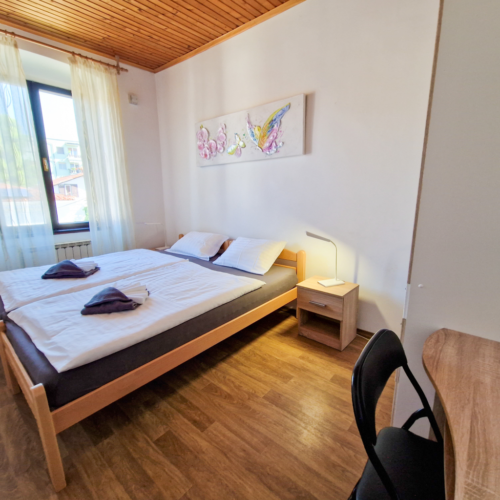 Dve prostorni spalnici z novimi vzmetnicami, garderobno omaro in pisalnimi mizami zagotavljata sproščujoče zatočišče. Razstegljiv kavč v dnevni sobi pa ponuja možnost nočitev za dodatni dve osebi. Na prvem nadstropju boste našli dobro opremljeno kopalnico, v pritličju pa še dodatni WC. Hiša ima klimatsko napravo in Wi-Fi povezavo z internetom. Vaš idealni pobeg v Izolo vas čaka!