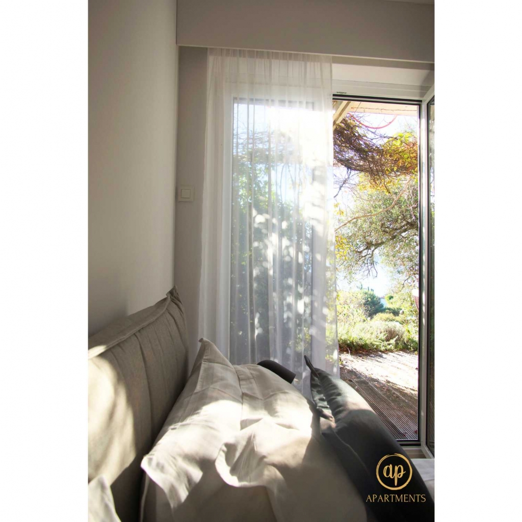 Apartma sprejme do 4 goste in ponuja dve spalnici, dnevno sobo, kuhinjo in kopalnico. Ima teraso z manjšim vrtom, ki je kot nalašč za sproščanje na prostem. Gostje lahko uporabljajo tudi skupno zelenico za hišo. Na voljo so parkirno mesto, klima, Wi-Fi, žar in vključena posteljnina. Manjši hišni ljubljenčki so dobrodošli ob doplačilu.