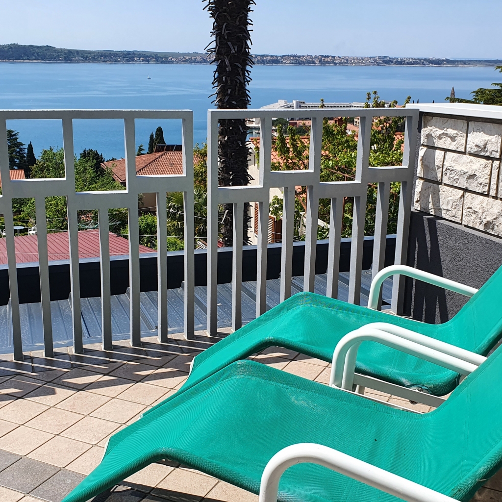 Prostorno in nadstandardno urejeno počitniško stanovanje z enim najlepših razgledov na morje, kar jih ponuja Portorož. Wellness apartma Aria se nahaja na Belem Križu nad Portorožem in zagotavlja res popolno udobje bivanja. Velika kuhinja vas ne bo pustila na cedilu pri še tako zahtevnih kuhinjskih podvigih, saj je opremljena z vsemi sodobnimi aparati. Kuhinja se nadaljuje v prostorno in sončno jedilnico ter udobno dnevno sobo s kaminom in smart TV-jem. Počitek na balkonu s pogledom na modrino morja vam ponuja popoln odklop in sprostitev; lahko pa se tudi odločite za aktivo preživete urice, s športnimi rekviziti, ki so tu na razpolago. Apartma ima ločeno spalnico z zakonsko posteljo, ponuja pa tudi možnost dodatnega ležišča za dve osebi na raztegljivem kavču v dnevni sobi. Celotno stanovanje je klimatizirano, ogrevano, varovano in ponuja brezžični internetni dostop. Parkirišče je nadkrito in se nahaja neposredno ob stavbi. Ob prihodu pa vsakega gosta pričaka tudi košarica dobrodošlice ter manjše darilce.