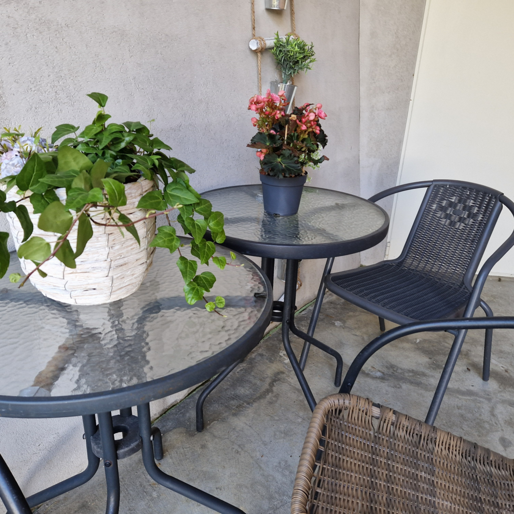 Pred apartmajem se nahaja terasa obdana z zelenjem, kjer se lahko sončite na udobnih ležalnikih, pripravljate svoje najljubše jedi na žaru in občudujete čudovit razgled na Strunjanski zaliv s Piranom v ozadju.