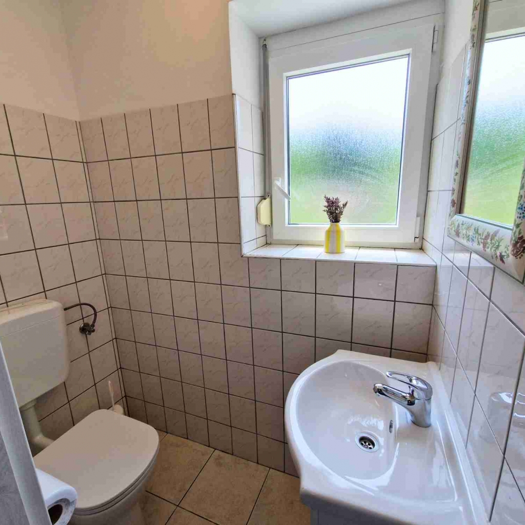 Apartma v pritličju ponuja odprt in svetel bivalni prostor s popolnoma opremljeno kuhinjo, jedilno mizo za 4 osebe ter udobnim raztegljivim kavčem za dodatni 2 osebi. V pritličju se nahaja tudi kopalnica s prho.