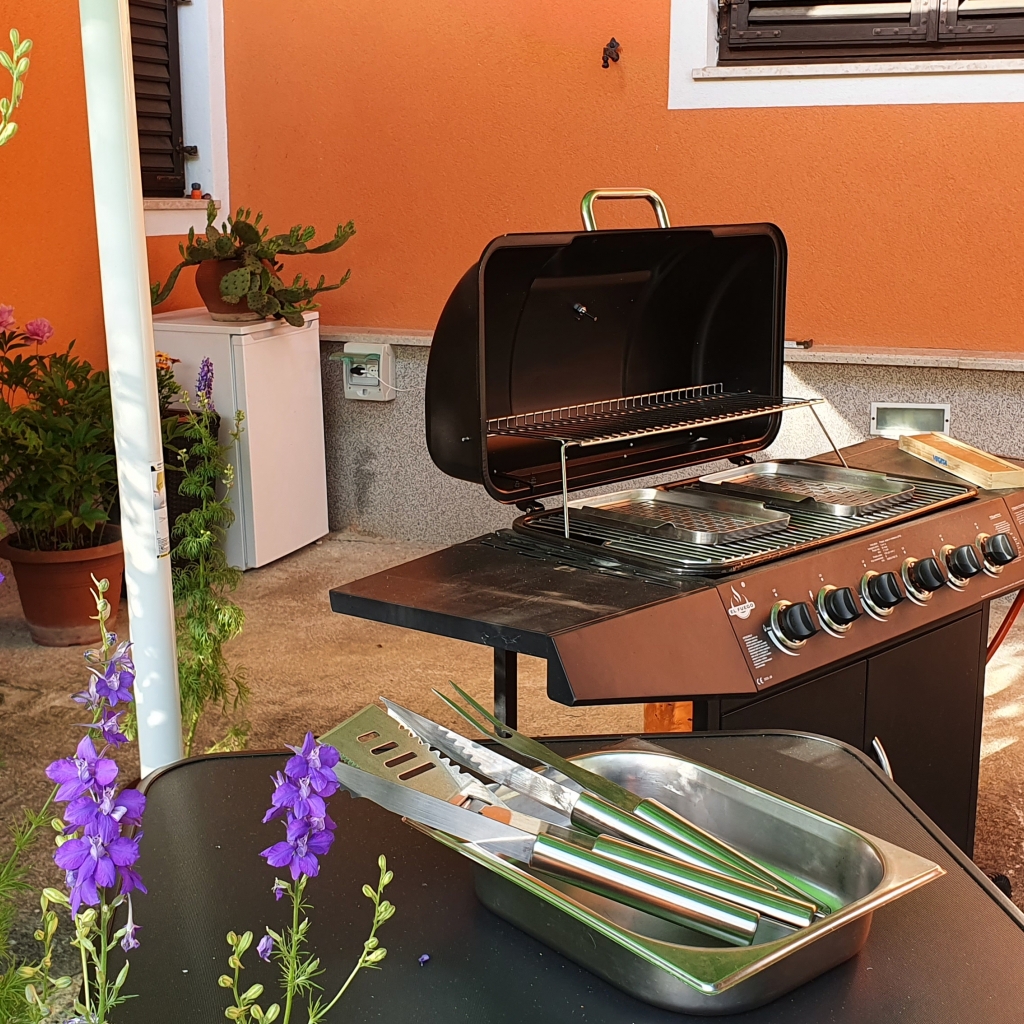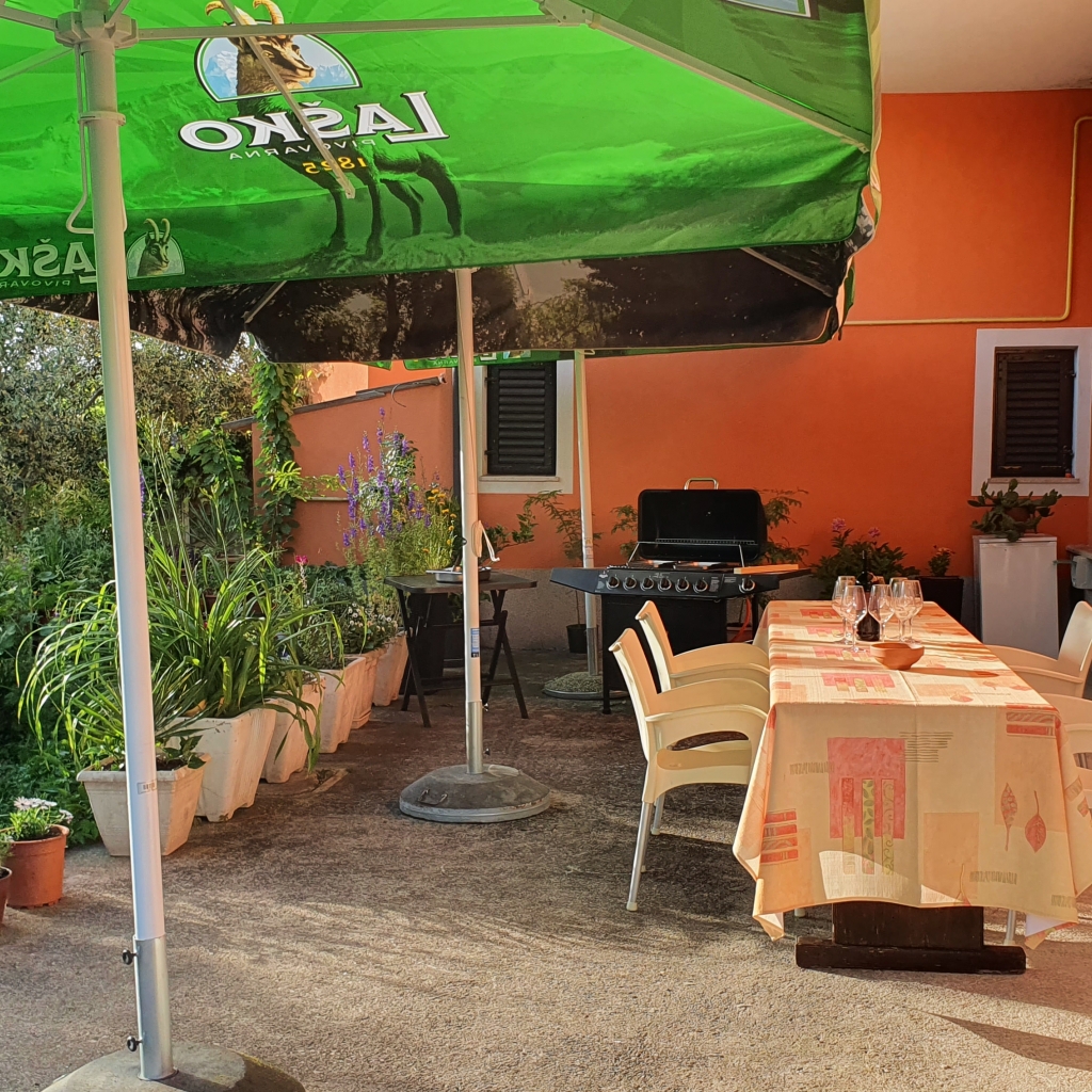 Ob čudovitem vrtu za hišo je velika terasa z mizo za 12 oseb, žarom ter vsemi potrebnimi pripomočki za peko na žaru. Po obedu pa se lahko sprostite na ležalnikih in uživate v pogledu na dolino reke Dragonje.
