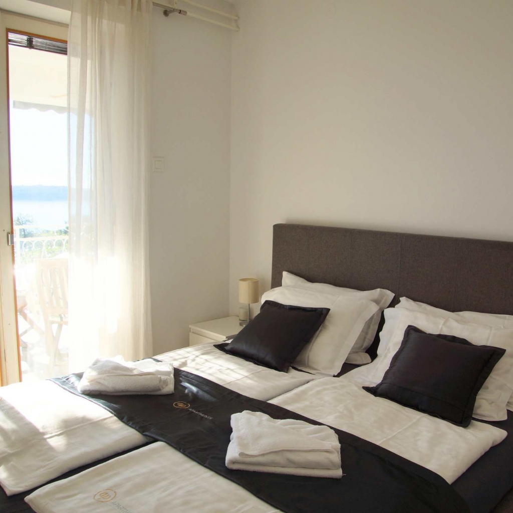 Apartma sprejme do 4 goste in obsega dve spalnici, dnevno sobo, kuhinjo in kopalnico. Velik balkon je idealen za sprostitev. Za hišo je skupna zelenica, ki je na voljo gostom obeh apartmajev. Gostom so na voljo parkirno mesto, klima, Wi-Fi, žar in vključena posteljnina. Manjši hišni ljubljenčki so dobrodošli ob doplačilu.