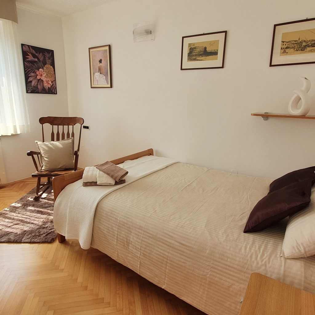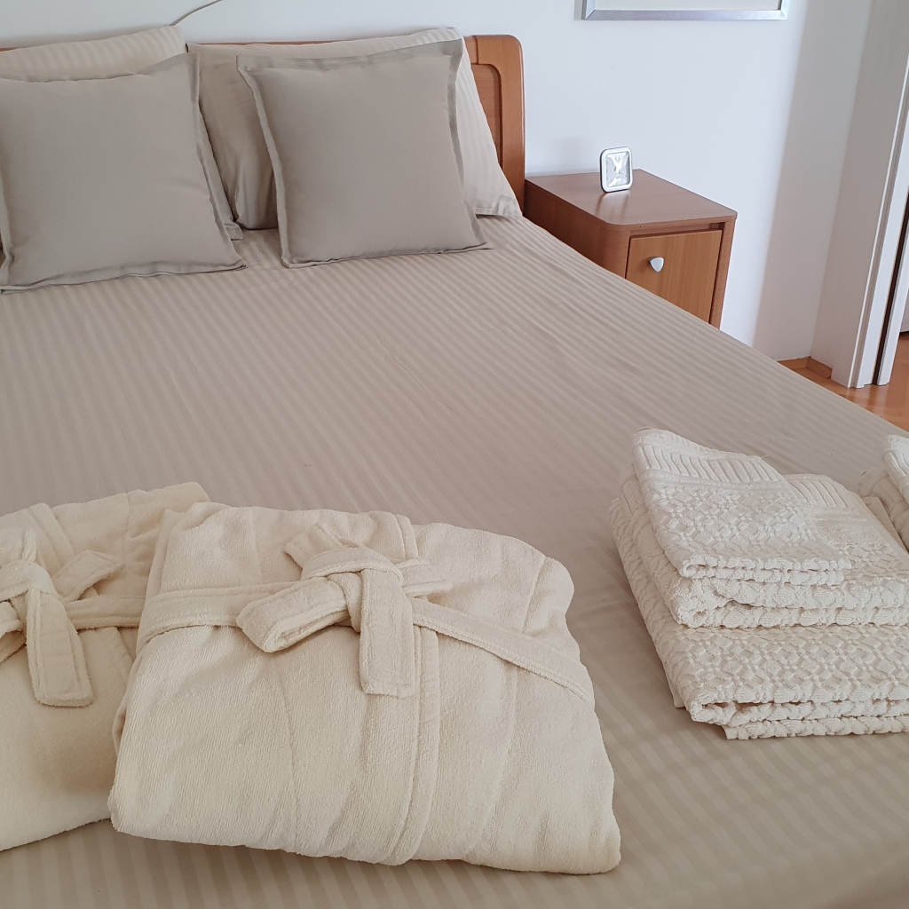 Prostorno in nadstandardno urejeno počitniško stanovanje z enim najlepših razgledov na morje, kar jih ponuja Portorož. Wellness apartma Aria se nahaja na Belem Križu nad Portorožem in zagotavlja res popolno udobje bivanja. Velika kuhinja vas ne bo pustila na cedilu pri še tako zahtevnih kuhinjskih podvigih, saj je opremljena z vsemi sodobnimi aparati. Kuhinja se nadaljuje v prostorno in sončno jedilnico ter udobno dnevno sobo s kaminom in smart TV-jem. Počitek na balkonu s pogledom na modrino morja vam ponuja popoln odklop in sprostitev; lahko pa se tudi odločite za aktivo preživete urice, s športnimi rekviziti, ki so tu na razpolago. Apartma ima ločeno spalnico z zakonsko posteljo, ponuja pa tudi možnost dodatnega ležišča za dve osebi na raztegljivem kavču v dnevni sobi. Celotno stanovanje je klimatizirano, ogrevano, varovano in ponuja brezžični internetni dostop. Parkirišče je nadkrito in se nahaja neposredno ob stavbi. Ob prihodu pa vsakega gosta pričaka tudi košarica dobrodošlice ter manjše darilce.